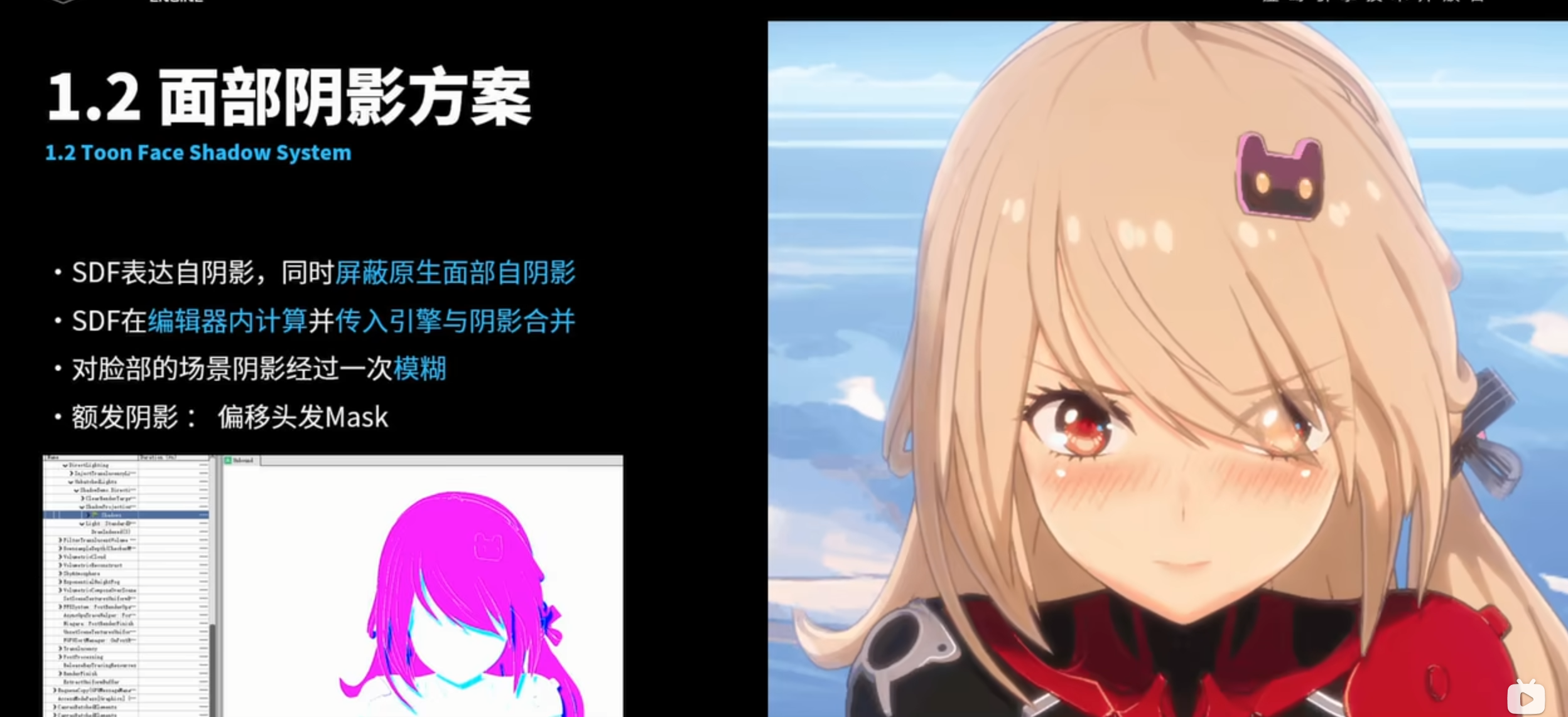 BlueRoseNote/02-Note/演讲与教程笔记/虚幻开放日2024/用虚幻引擎5为《幻塔》定制高品质动画流程风格化渲染管线/SDF阴影与额发阴影.png